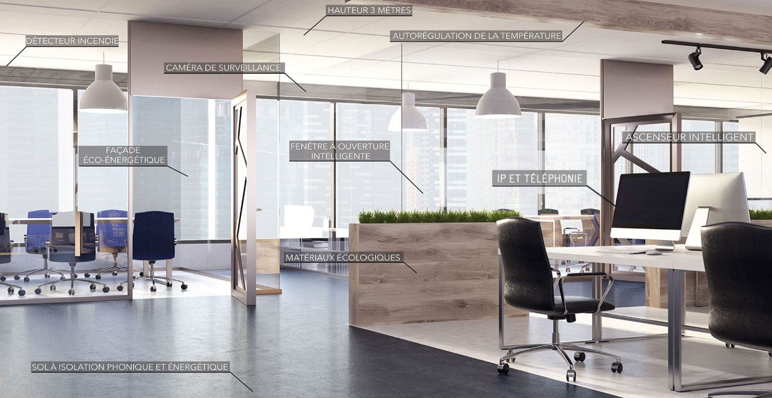 un bloc bureaux qui se compose de 31 bureaux, 5 commerces et un parking au sous-sol