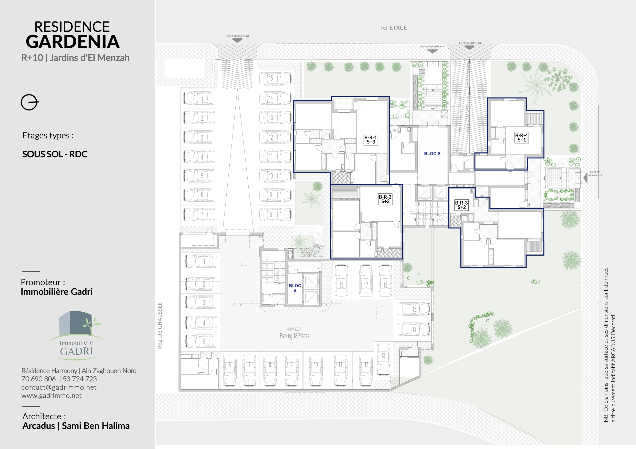 Située au sein du lotissement résidentiel “Kenza”, dans le quartier prisé des Jardins d’El Menzah I, la Résidence Gardenia bénéficie d’un emplacement stratégique entre El Menzah, et Manar. Proche des grands axes et parfaitement desservie, elle offre un accès rapide aux pôles universitaires (Campus Manar), aux centres commerciaux, services de proximité et espaces de loisirs. Un cadre calme à l’écart de l’agitation, tout en restant connecté aux principaux centres d’activité de la capitale.